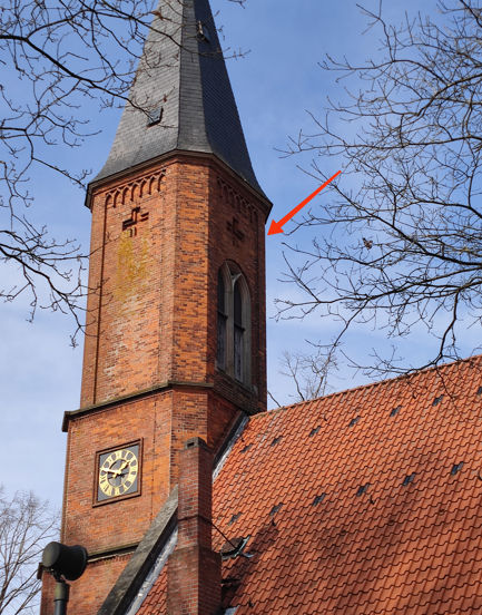 20. März 2026: Ganz schön was los an unserem Kirchturm: die Turmfalken balzen! Jedes Jahr beziehen sie ihren Nistkasten, der sich hinter einem Fenster befindet. Im letzten Jahr wurden fünf Junge groß: beachtlich!
