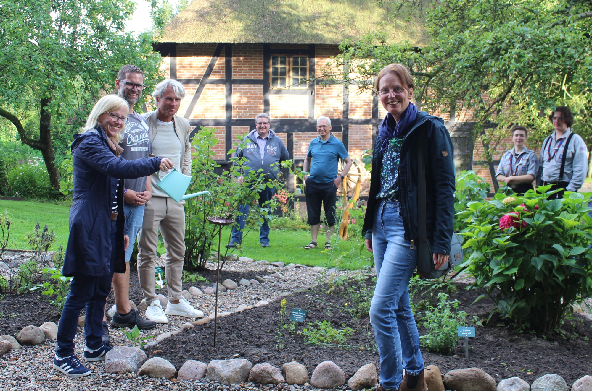 Nora Steen, Kirchengemeinderatsmitglied René Holz, Andreas Klötzing von der Klara-Samariter-Stiftung, Propst Dirk Süßenbach, Pastor Achim Strehlke, Biologin Dr. Katrin Romahn, Lara Bögelsack und David Süßenbach vom Pfadfinderstamm Sventana.