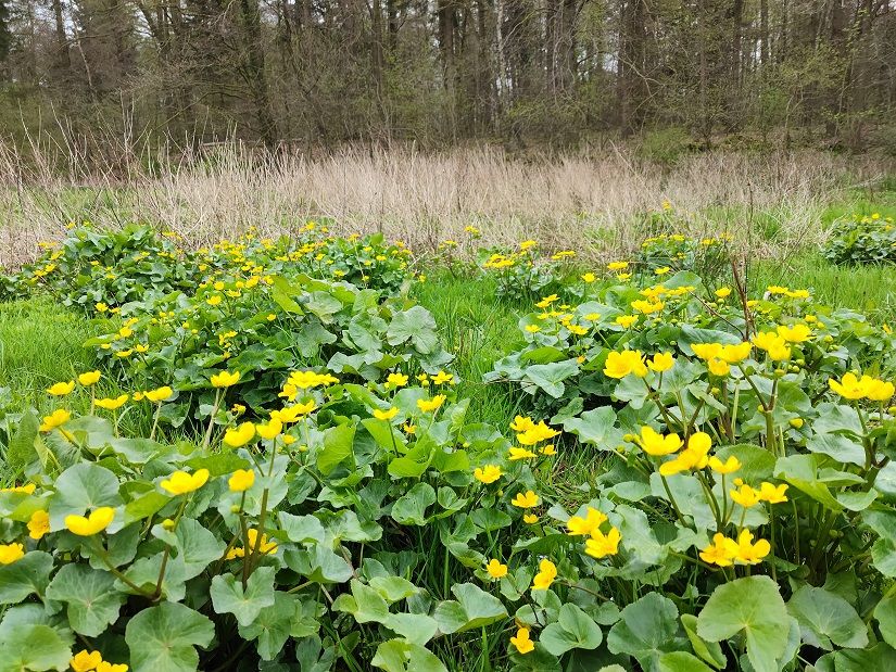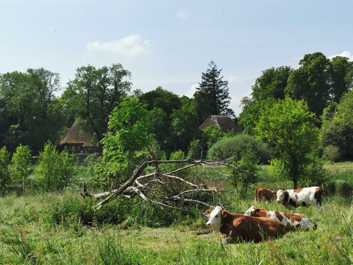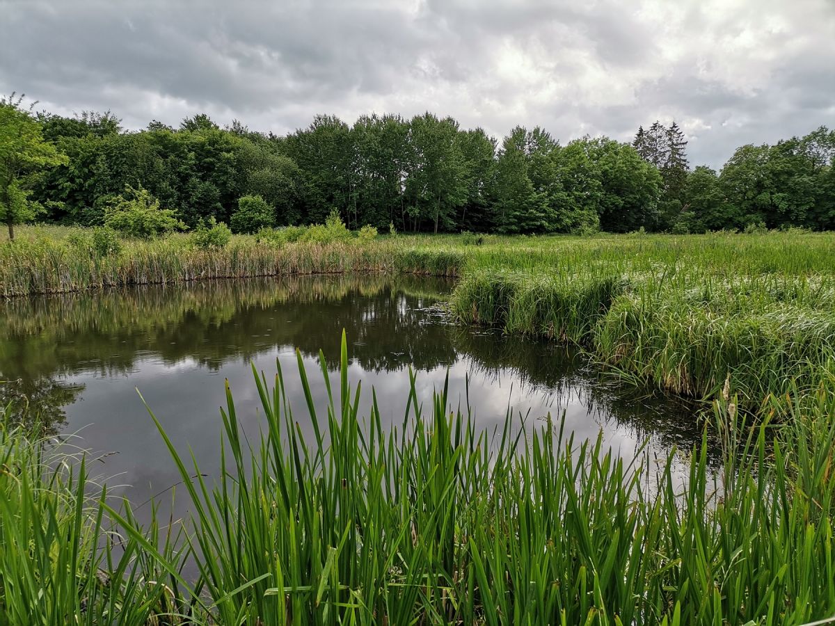 Wir tun etwas für die heimische Artenvielfalt! Im Naturerlebnisraum wurde eine eiszeitliche Senke renaturiert. Auf der Fläche „Alte Hufe“ wurden im Rahmen eines Ökokontos Kleingewässer, Gehölzinseln und extensiv bewirtschaftetes Grünland eingerichtet. 2022 entstand ein Gewässer in einer Senke auf der „Schulkoppel“ Mönchneversdorf, das sofort von der bedrohten Rotbauchunke und vielen anderen Amphibien, Libellen und Brutvögeln angenommen wurde. 2023/2024 wurden 12 Hektar Mehrschnittgrünland in den „Bolandswiesen“ zu einer naturnahen halboffenen Weidelandschaft umgewandelt. Hierfür wurden insgesamt fast 400 Meter Drainagen entnommen, um nassen Senken, Feuchtgrünland und Quellen wiederherzustellen, Müll entsorgt, und ein Zaun gebaut. Das Projekt „Bolandswiesen“ wurde vom Kreis Ostholstein gefördert. Inzwischen ist zu beobachten, dass sich viele Pflanzenarten des Feuchtgrünlandes und der Quellen wieder angesiedelt bzw. ausgebreitet haben. Die Feuchtbereiche werden von Kranich, Graureiher und Rotmilan zur Nahrungssuche genutzt; im Knick brütet der Neuntöter. Das Grünland wird extensiv beweidet mit Rindern von örtlichen Landwirten.